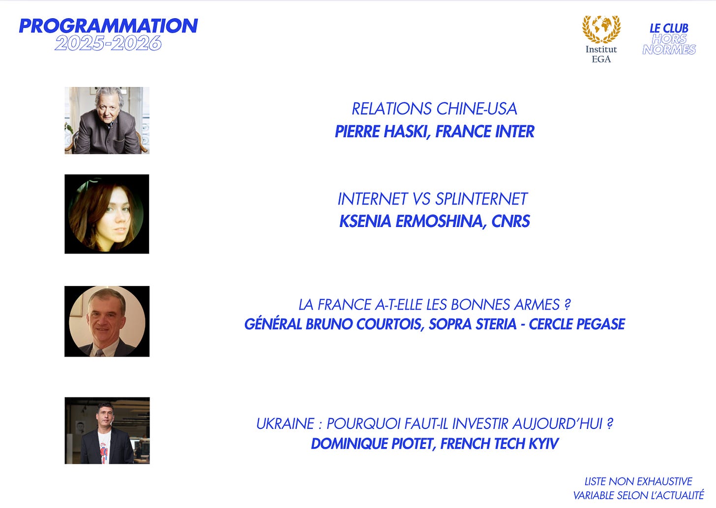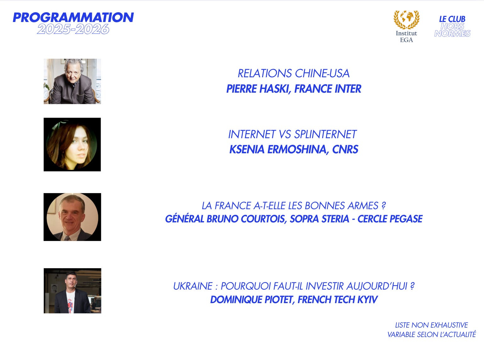 Ce cycle de conférences s’inscrit dans le cadre du partenariat noué au printemps 2025 entre HORS NORMES et l’IEGA. Destiné aux dirigeants et décideurs, il a pour ambition de fournir une lecture prospective des équilibres internationaux, en s’appuyant sur l’identification des signaux faibles par un réseau commun de journalistes et de chercheurs.